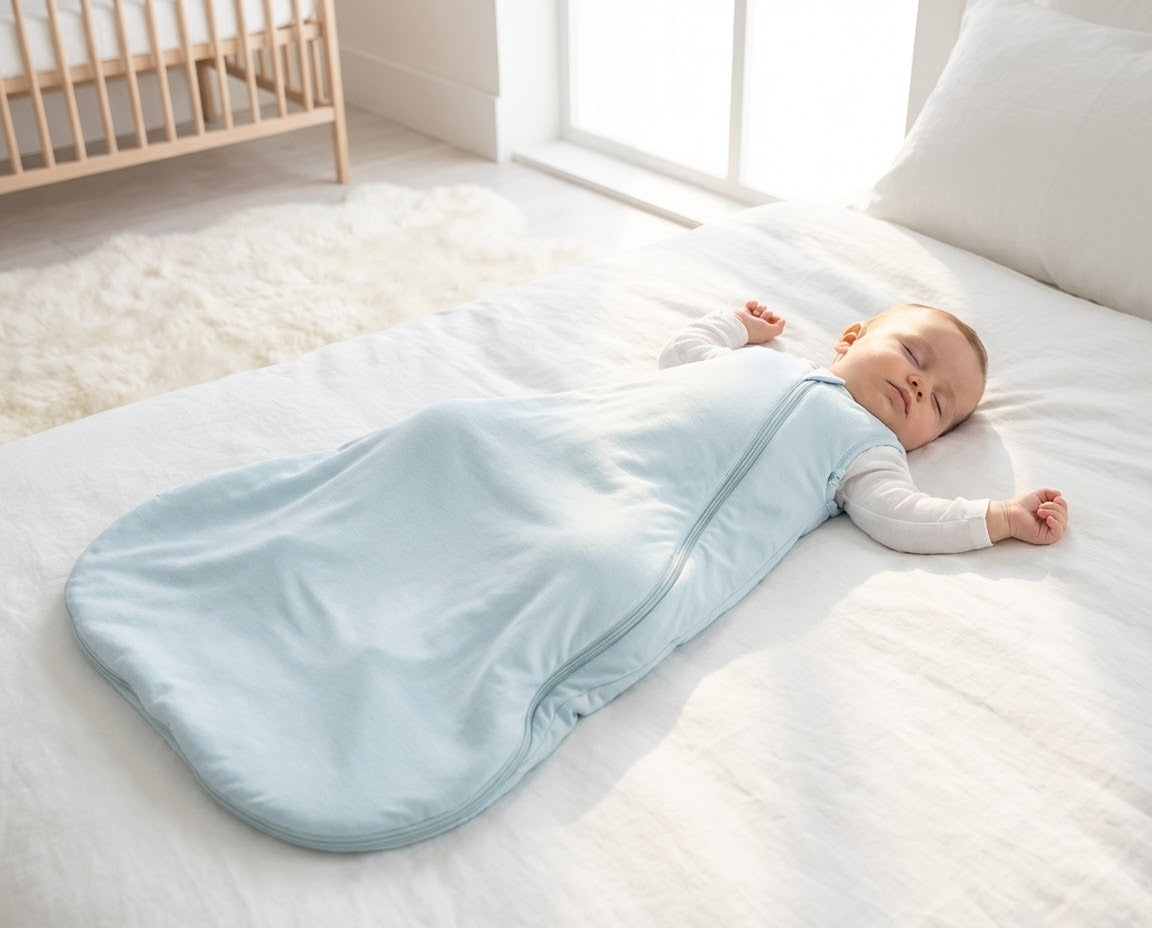 TOG (“Thermal Overall Grade”) is a simple way to show how warm a sleep bag is. At Lucas Play, we currently offer 1.0 TOG because it’s the most versatile, and ideal for typical nursery temps (about 20–22°C / 68–72°F).